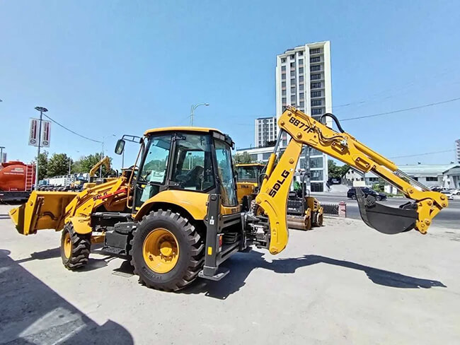 La retroexcavadora SDLG está equipada con un sistema de articulación de la pala cargadora mejorado que proporciona una potente fuerza de arranque, y viene con una pala cargadora de 1 m³ de serie.